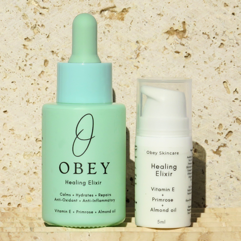 Our Healing Elixir is a luxurious formulation of Vitamin E Acetate, Rosehip Oil, Evening Primrose, Arnica, and Sweet Almond Oil — each chosen for their restorative, anti-inflammatory, and glow-enhancing properties.